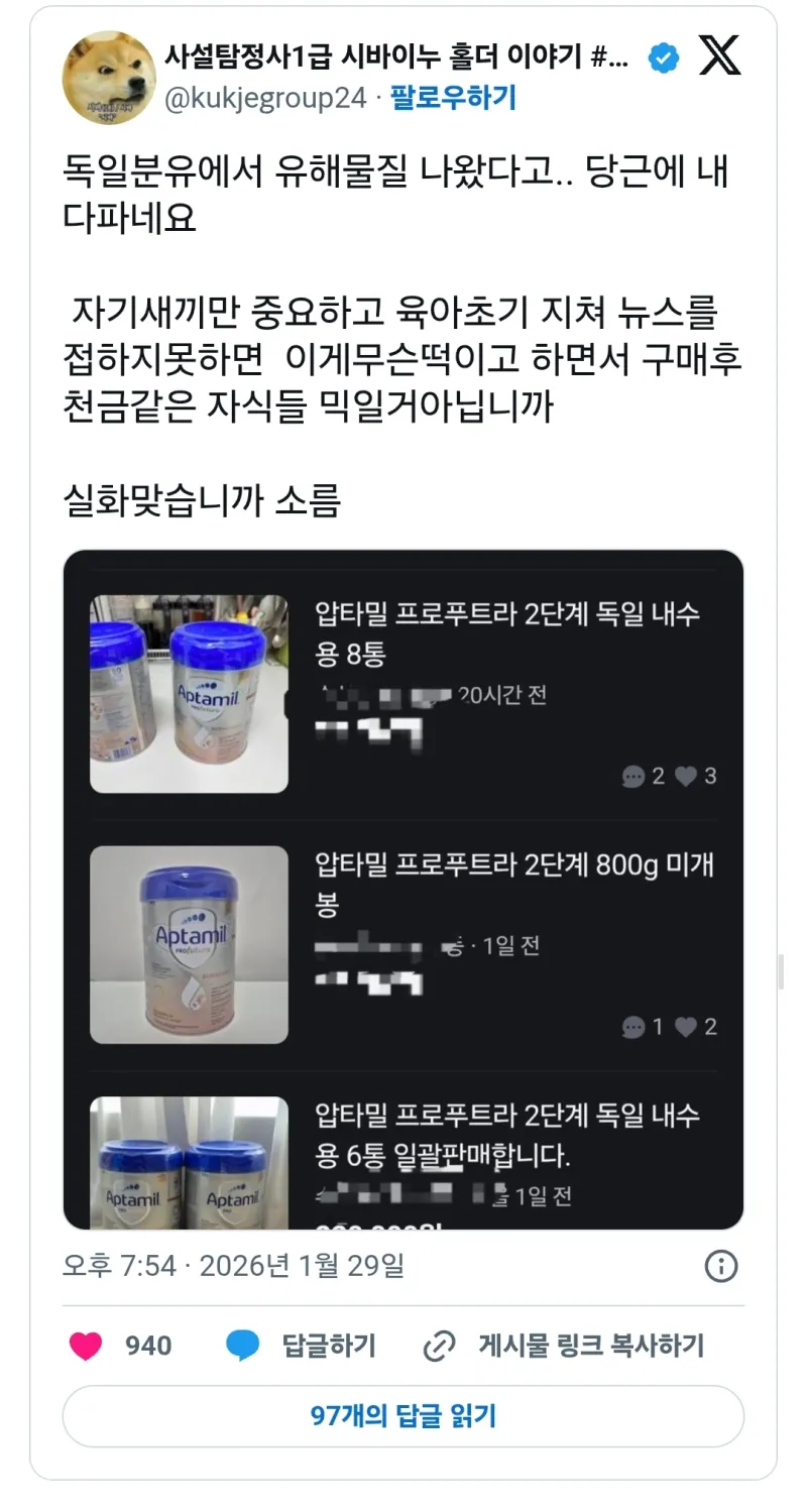 독일분유에서 유해물질 나왔다고.. 당근에 내다파네요